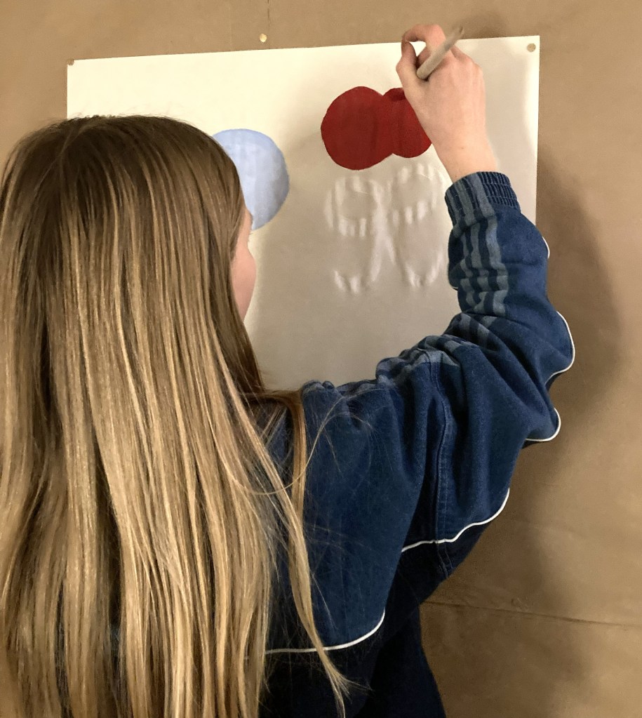 In der heutigen Zeit wird „Dienen“ oft mit Demut und Selbstaufopferung in Verbindung gebracht. Im Kontext des Farb- und Zeichenspiels ist es jedoch eine wichtige Form der Unterstützung. Zu Beginn wird das Papier gemeinsam mit der malbegleitenden Person an der Wand befestigt. Dabei werden Platz und Format des Malbereichs durch dich festgelegt. Du malst in deinem eigenen Rhythmus und auf deinem eigenen Weg. Während dieses Prozesses begleitet dich die malbegleitende Person aufmerksam und ruhig, gibt Sicherheit ohne zu lenken, bereitet Farben vor, mischt neue Farbtöne und reicht dir frisches Papier – ganz ohne Kommentar, Lob oder Bewertung. So kann sich der Malende vollständig auf den kreativen Prozess und das eigene Spiel konzentrieren.